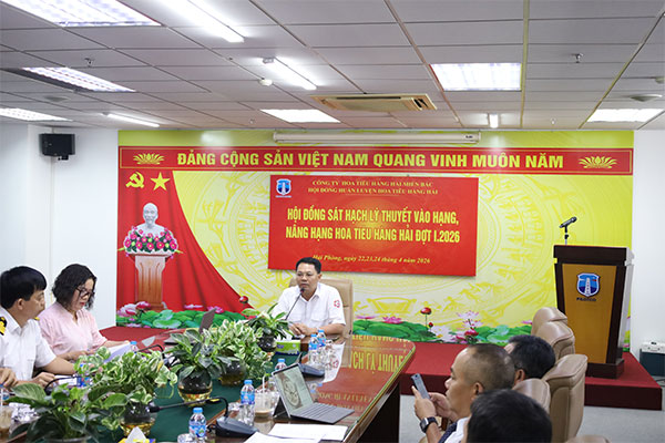 Từ ngày 22 đến 24/4/2026, tại Phòng họp Công ty, tầng 14 Tòa nhà Cát Bi Plaza, số 1A, Lê Hồng Phong, TP Hải Phòng, Công ty Hoa tiêu hàng hải miền Bắc tổ chức kỳ thi sát hạch lý thuyết nâng hạng, vào hạng hoa tiêu hàng hải đợt I năm 2026. Tới dự và chỉ đạo kỳ thi có đồng chí Nguyễn Đức Thành, Phó Bí thư Đảng ủy, Giám đốc, Chủ tịch Hội đồng Huấn luyện đào tạo Công ty Hoa tiêu hàng hải miền Bắc. Kỳ thi được tổ chức theo Thông báo số 421/TB-CTHTHHMB ngày 21/4/2026 và Nội quy kỳ thi ban hành kèm Quyết định số 157/QĐ-CTHTHHMB ngày 21/4/2026 của Giám đốc Công ty.