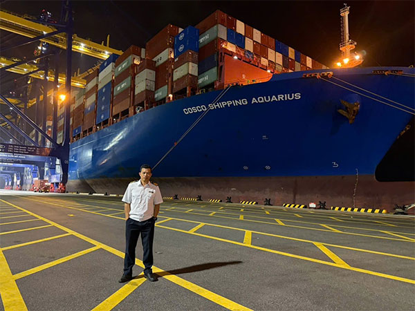 Ông Hoàng Quang Vinh - Hoa tiêu ngoại hạng, Công ty Hoa tiêu hàng hải miền Bắc, người dẫn tàu COSCO SHIPPING AQUARIUS.